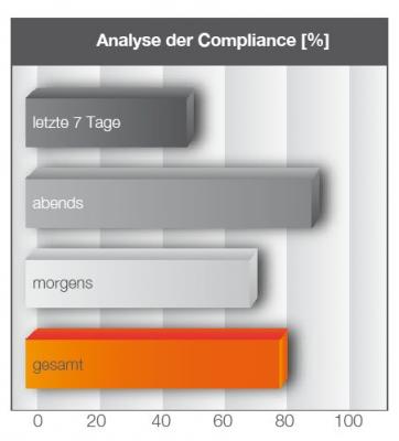 Von der SMART CARD aufgezeichnete Therapiedaten am Beispiel der Inhalation von Colistin. 1 Mio. IE über 28 Tage